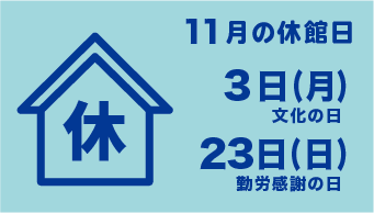 11月の休館日です。11月3日(月):文化の日11月23日(日):勤労感謝の日・第三日曜日11月24日(月):振替休日ですが、児童館は通常通り開館いたします。 ※10月から、午後5:30より「お片付け」、5:45には帰宅時間となっておりますので、帰りが遅くなら...